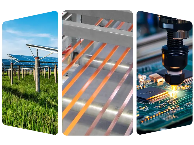 • फोटोभोल्टिक क्षेत्र: फोटोभोल्टिक वेल्डिङ रिबन र बसबारहरूको ठूलो उत्पादन कम्पोनेन्टहरूलाई प्रभावकारी रूपमा विद्युत सञ्चालन गर्न मद्दत गर्न।